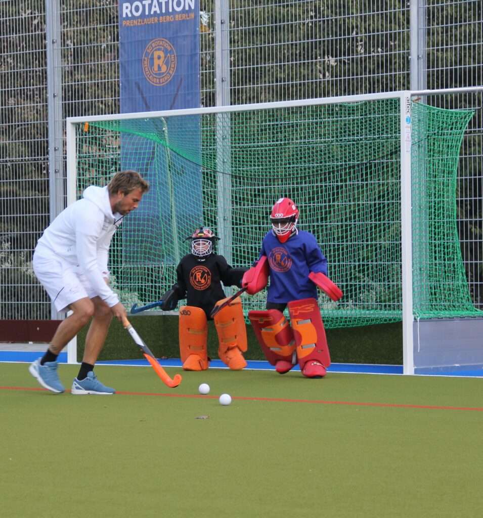 Da ich schon von Klein auf mit einem Eishockeyschläger in der Hand rumgerannt bin und ein Versuch in einem Fußballverein nicht funktionierte, haben wir nach etwas Anderem gesucht. Mit 5 Jahren hat meine Mutter durch Zufall den noch sehr kleinen Hockey Verein Rotation gefunden. Sofort nach einem Anruf bei Robert Kanold konnte ich zum Probetraining und sollte sofort am nächsten Wochenende an einem Spieltag in der Hansastraße  teilnehmen. Seitdem bin ich dabei. Der nächste Trainer nach Robert war Hendrik. Es folgten Paul, Leo und viele mehr.
