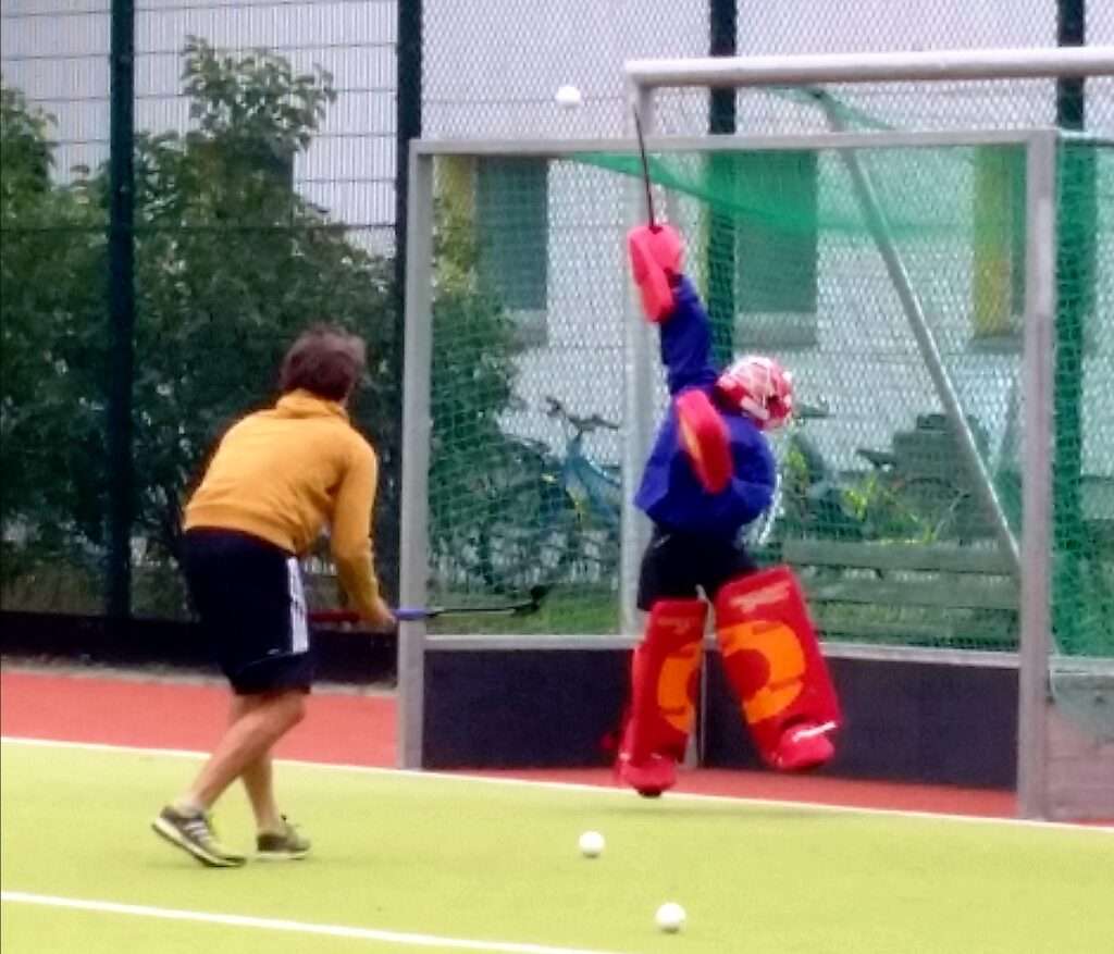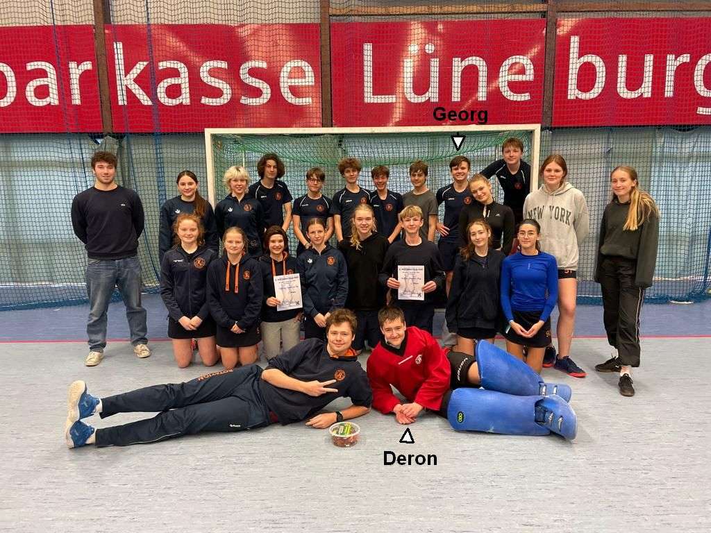 Ich habe mal etwas in unseren Vereinsunterlagen geblättert. Demnach hast du, Deron, schon 2012 mit 5 Jahren bei uns mit dem Hockeyspielen begonnen. Georg, du bist, wenn ich richtig informiert bin „erst“ 2017, mit 10 Jahren, zu uns zum Hockey gekommen. Da ihr beide in unmittelbarer Nachbarschaft wohnt, vermute ich, dass Deron dich überredet hat, doch mal mit zum Hockey zu kommen. Das sind aber Spekulationen meinerseits. Erzählt doch mal selbst.