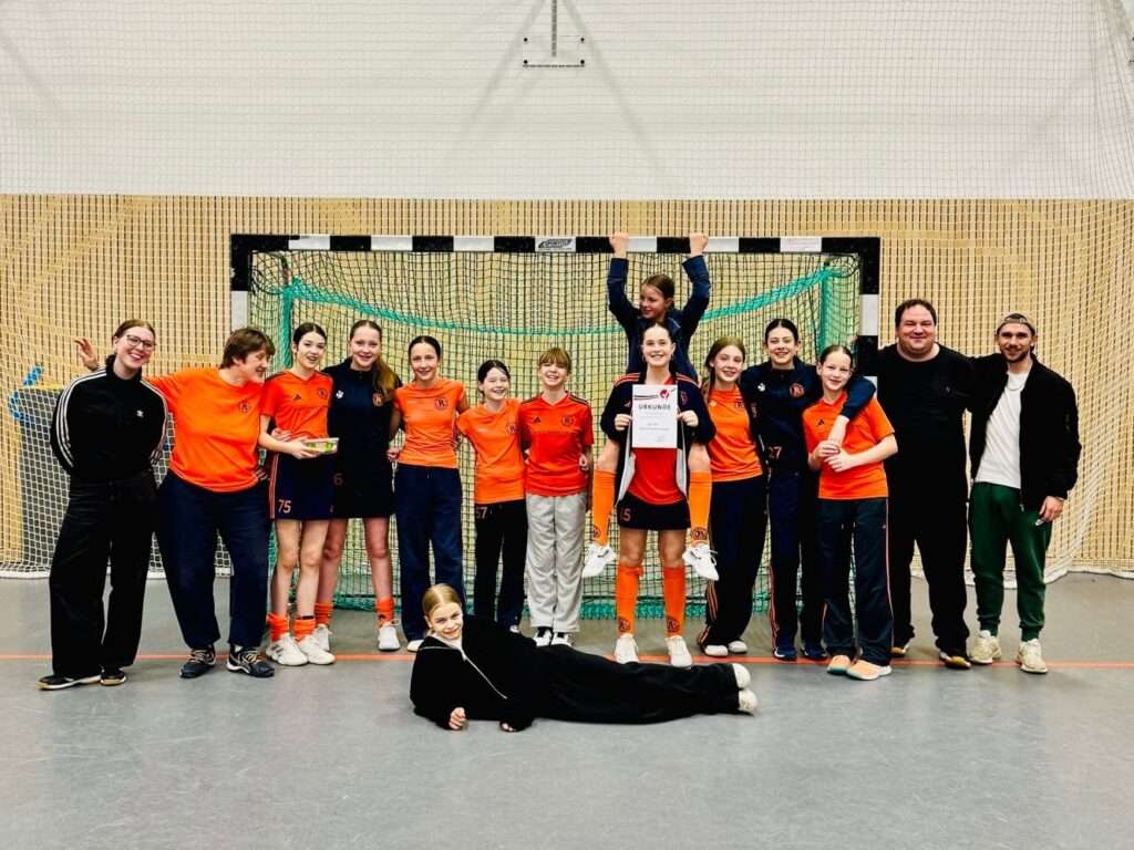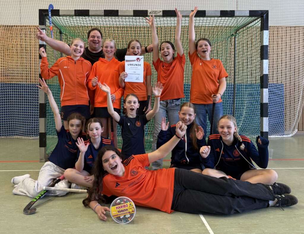 Zunächst hatten unsere „F-Pokalis“ mit dem CfL einen Gegner, der in 12 Hauptrundenspielen satte 78 Buden gemacht hatte. Ein verdammt dickes Brett! Und obwohl wir bis zur Pause (1:2) gut mithalten und die Hauptwaffe der Gegnerinnen, ihre Eckenstärke, super abwehren konnten, stand es am Ende doch 1:5 gegen uns. Das Spiel um Platz 3 gegen den BHC ging richtig gut los und zwar mit zwei fast identischen Sahnetoren von Leni (starker Flügellauf über rechts, schöner harter Querpass) und Jonna (mustergültiges Anlaufen mit tiiiiefem Brett und dann am langen Pfosten eingeschoben). Das sorgte für reichlich Elektrizität auf der Rotationsbank. In Halbzeit Zwo aber gelang BHC der Anschluss und dann schraubten die Gegnerinnen Tempo und Intensität nochmal hoch. Am Ende ging ein sehenswertes Spiel zwar mit 2:4 verloren, dennoch sind wir Erwachsenen alle mächtig stolz auf die Truppe. … und nach reichlich tröstenden Worten und den obligatorischen Gummitieren konnten auch unsere Pokalheldinnen wieder strahlen (irgendwann auch Hedi 😉).
